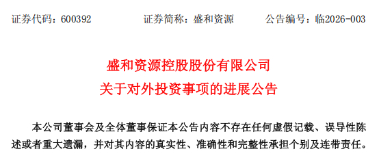 1月29日晚,盛和资源发布2025年度业绩预增公告,预计全年实现净利润7.9亿元至9.1亿元,较上年同期增加5.83亿元至7.03亿元,同比增长281.28%至339.20%。扣非净利润预计为7.65亿元至8.85亿元,同比增长285.86%至346.38%。